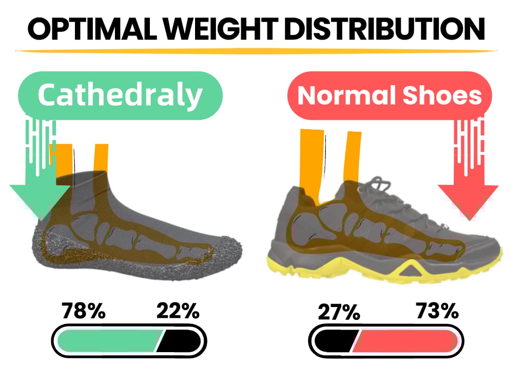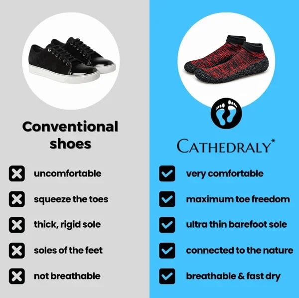 With the barefoot shoes from Cathedraly, you can feel the ground under your feet, you can walk with a more natural stride, with less pressure on your joints..